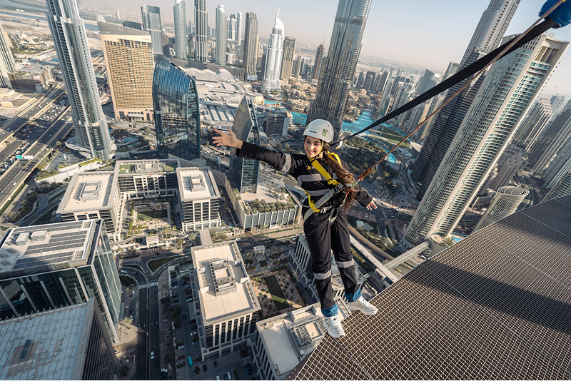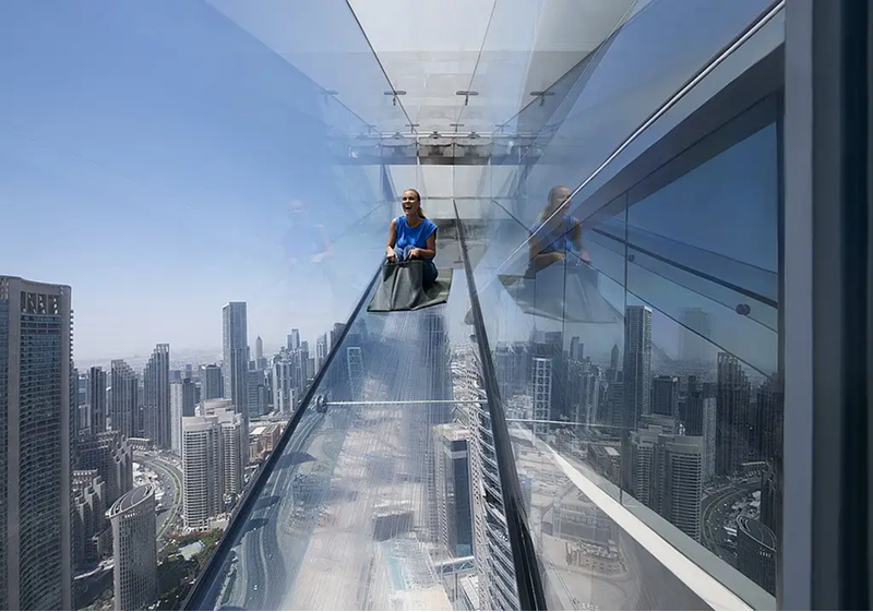 Sky Glass Slide – стеклянная горка длиной 25 м. По ней можно прокатиться с ветерком на высоте 219,5 м над землёй и, если не закрывать глаза, полюбоваться видом на Burj Khalifa и город.