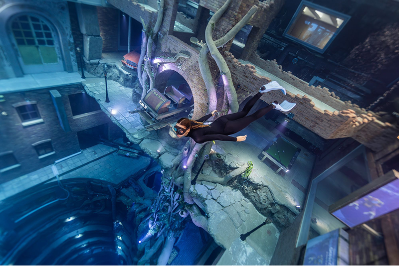 Температура воды постоянно поддерживается на уровне 30 градусов, поэтому нет необходимости надевать плотные гидрокостюмы. Бассейн оформлен в виде заброшенного затонувшего города с ультрасовременными системами освещения и звука. Чтобы исследовать его целиком, понадобится не одно погружение, а познакомиться с городом помогут профессиональные дайв-гиды.
