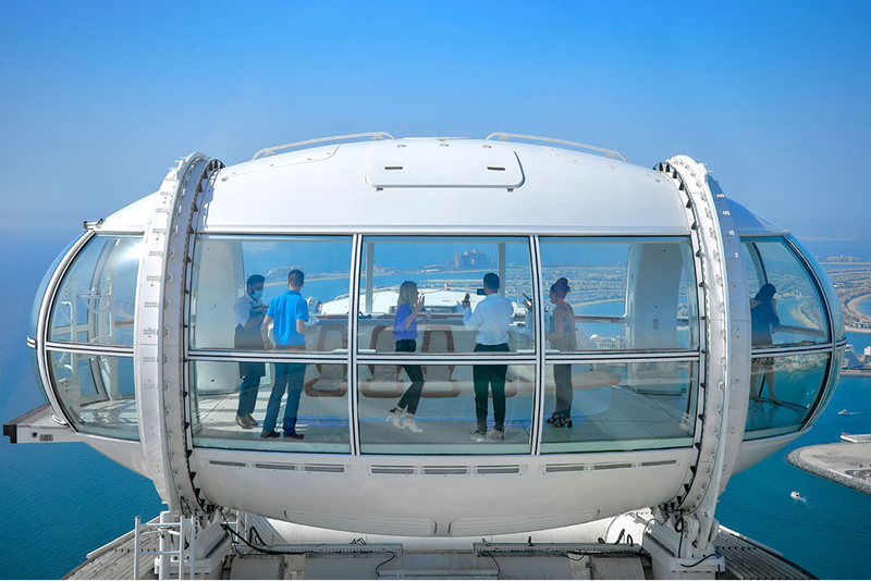 «Глаз Дубая» находится на Bluewaters Island. Из кабинок открывается панорама города: JBR, Dubai Marina, отель-парус Burj Al Arab, остров Palm Jumeirah, небоскрёб Бурдж-Халифа и другие достопримечательности. Аттракцион работает до 9 вечера, что позволяет насладиться также вечерней иллюминацией. В развлекательном комплексе у основания колеса можно послушать музыку, перекусить или поиграть в игры.