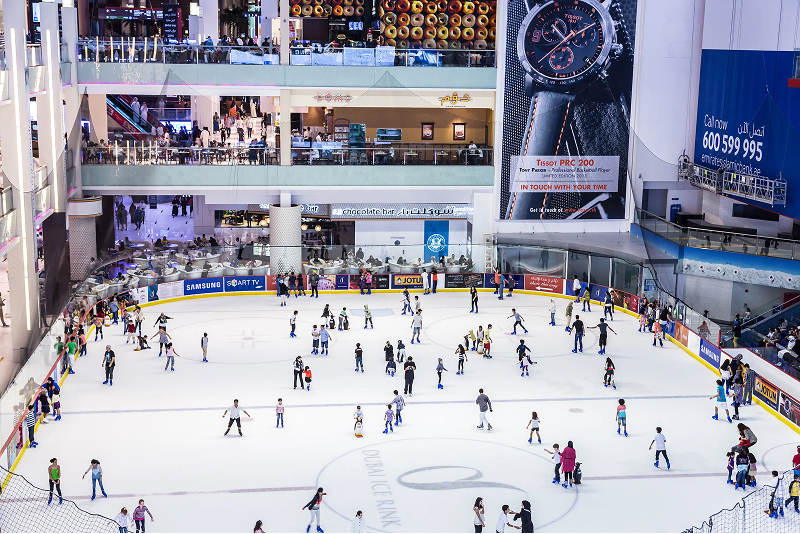 Dubai Ice Rink – это самый большой крытый каток на Ближнем Востоке, расположенный в Dubai Mall. Профессиональная ледовая арена, площадь которой составляет 1,8 тыс. кв. м, способна принять 2 тыс. посетителей одновременно.