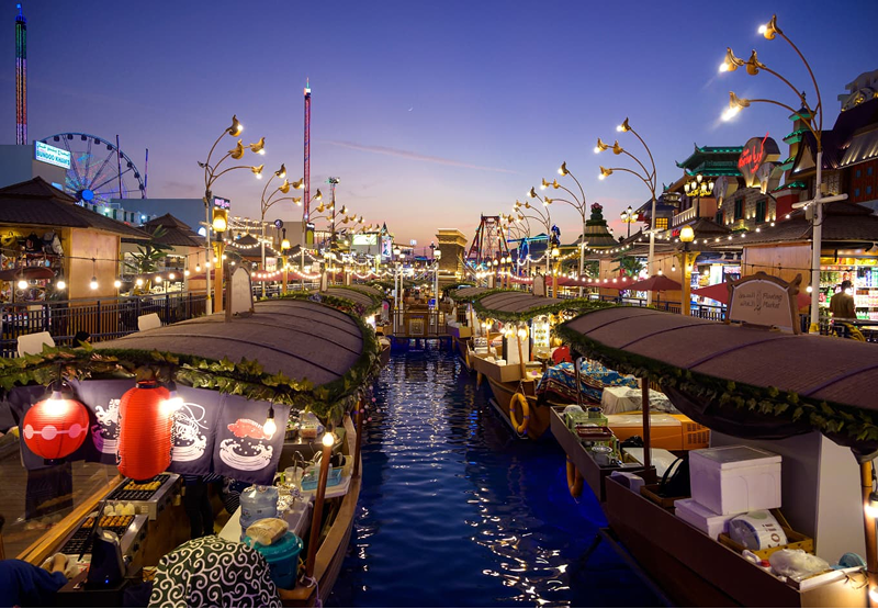 В Global Village работают десятки развлекательных аттракционов, кафе и ресторанов, а каждый вечер здесь проходит яркое шоу с фейерверками.