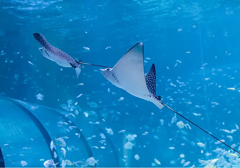 В океанариуме можно прогуляться по стеклянному мосту, отправиться в плавание на лодке с прозрачным дном, покормить рыбок и даже навестить морских черепах в специальном реабилитационном центре.